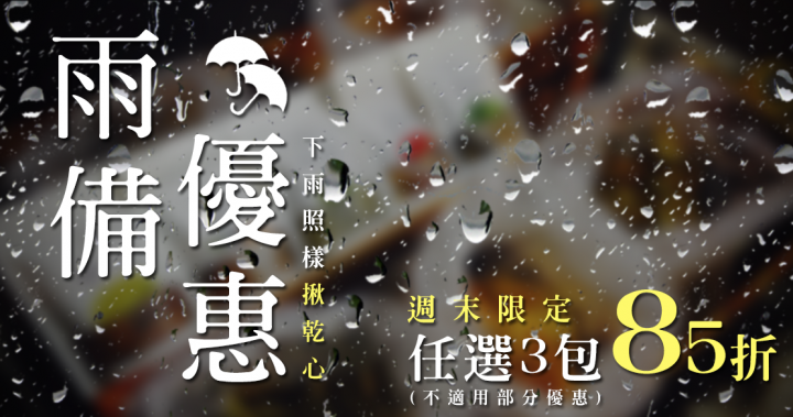 週末雨備優惠|今天下單85折